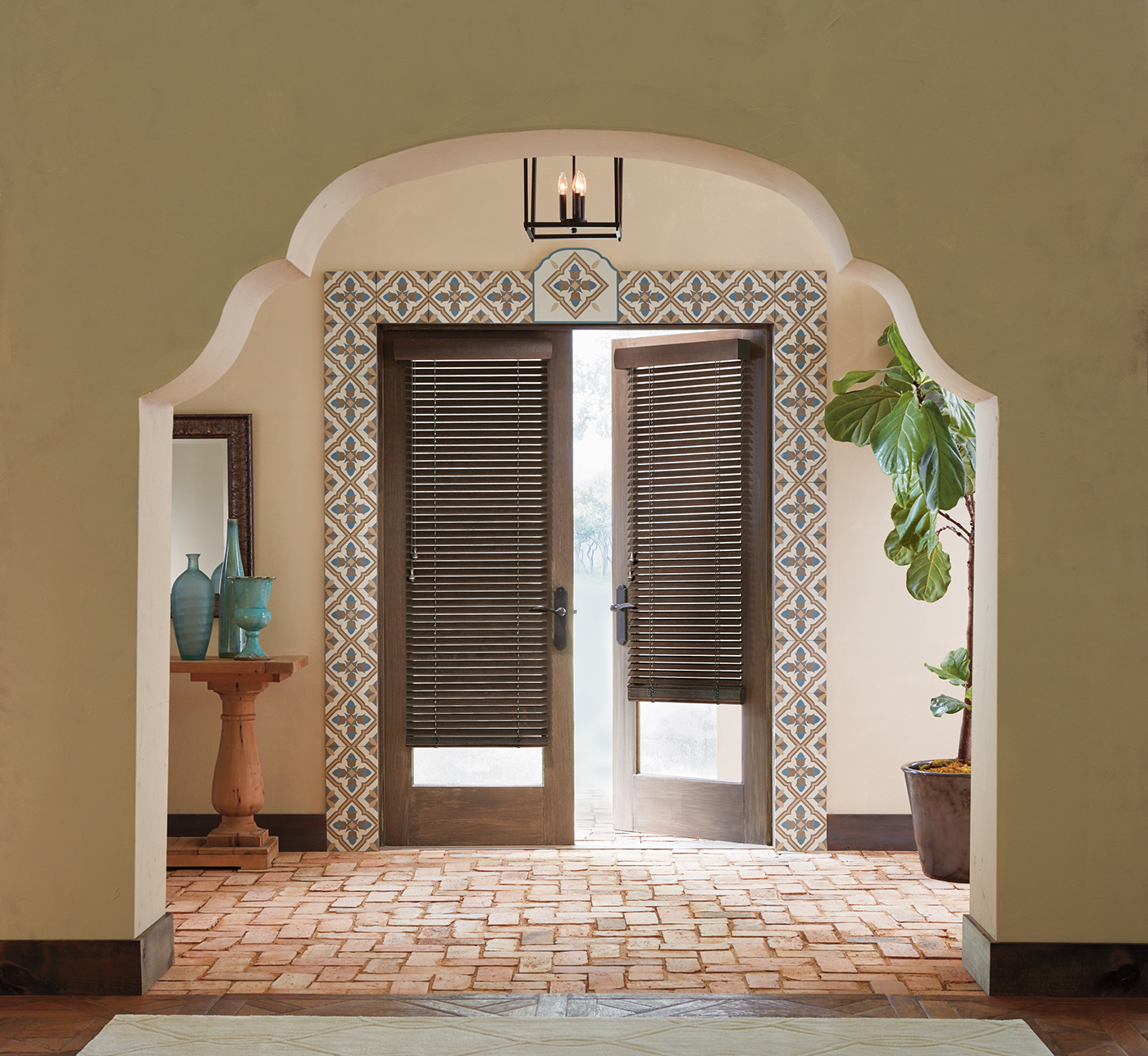 Basswood Entryway with Parkland Wood Blinds and Cornices