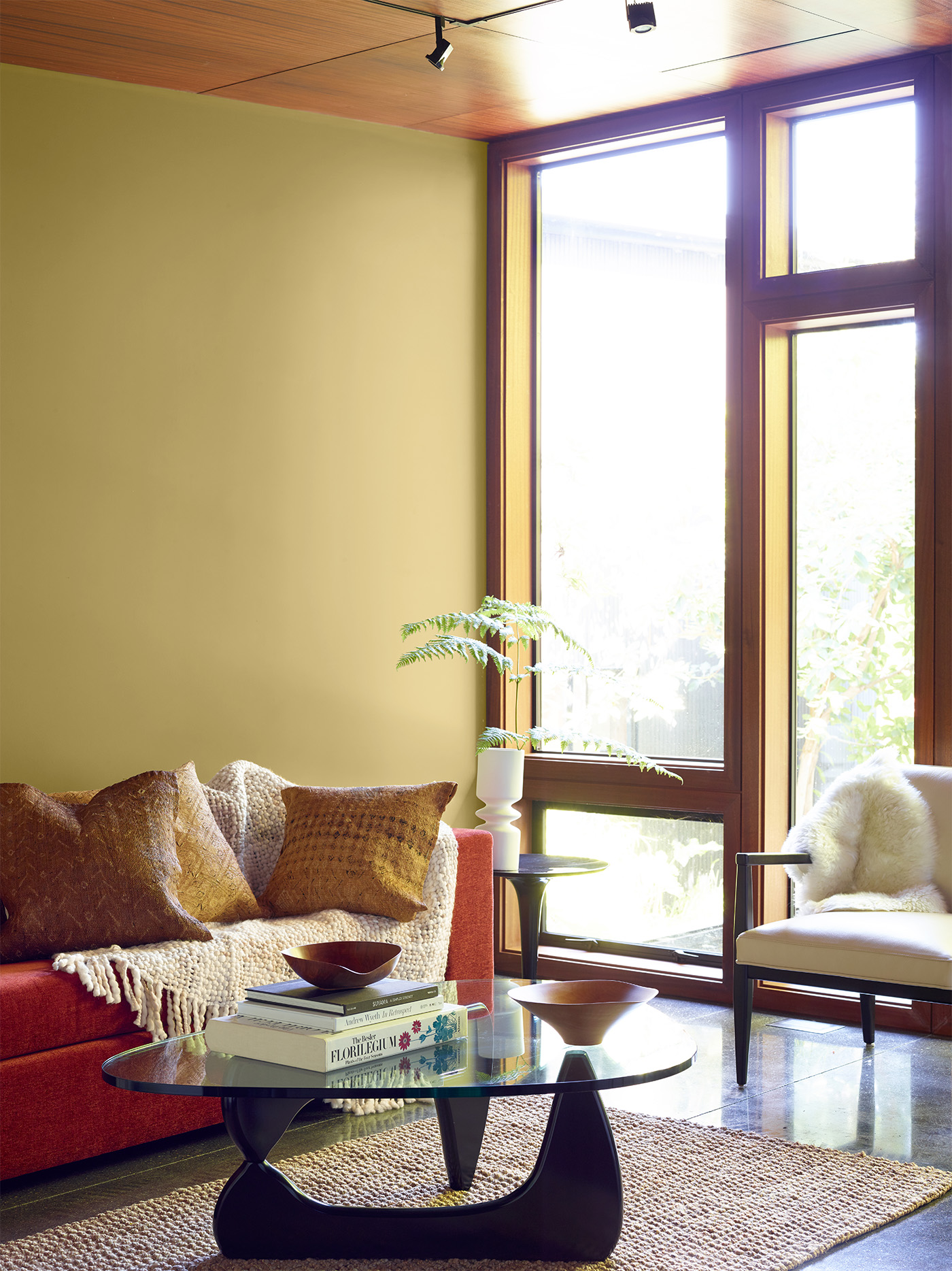 Pacific Northwest Regional Photography, Den, couch, sofa, chair, throw, plant, books, pillows, table, light, window, rud, fur, featuring (WALL):Anjou Pear AF-425, Natura®, Eggshell