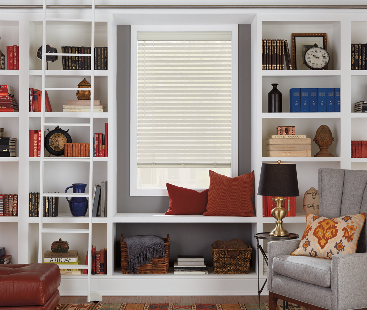 Library with EverWood Alternative Wood Blinds Standard Cordlock