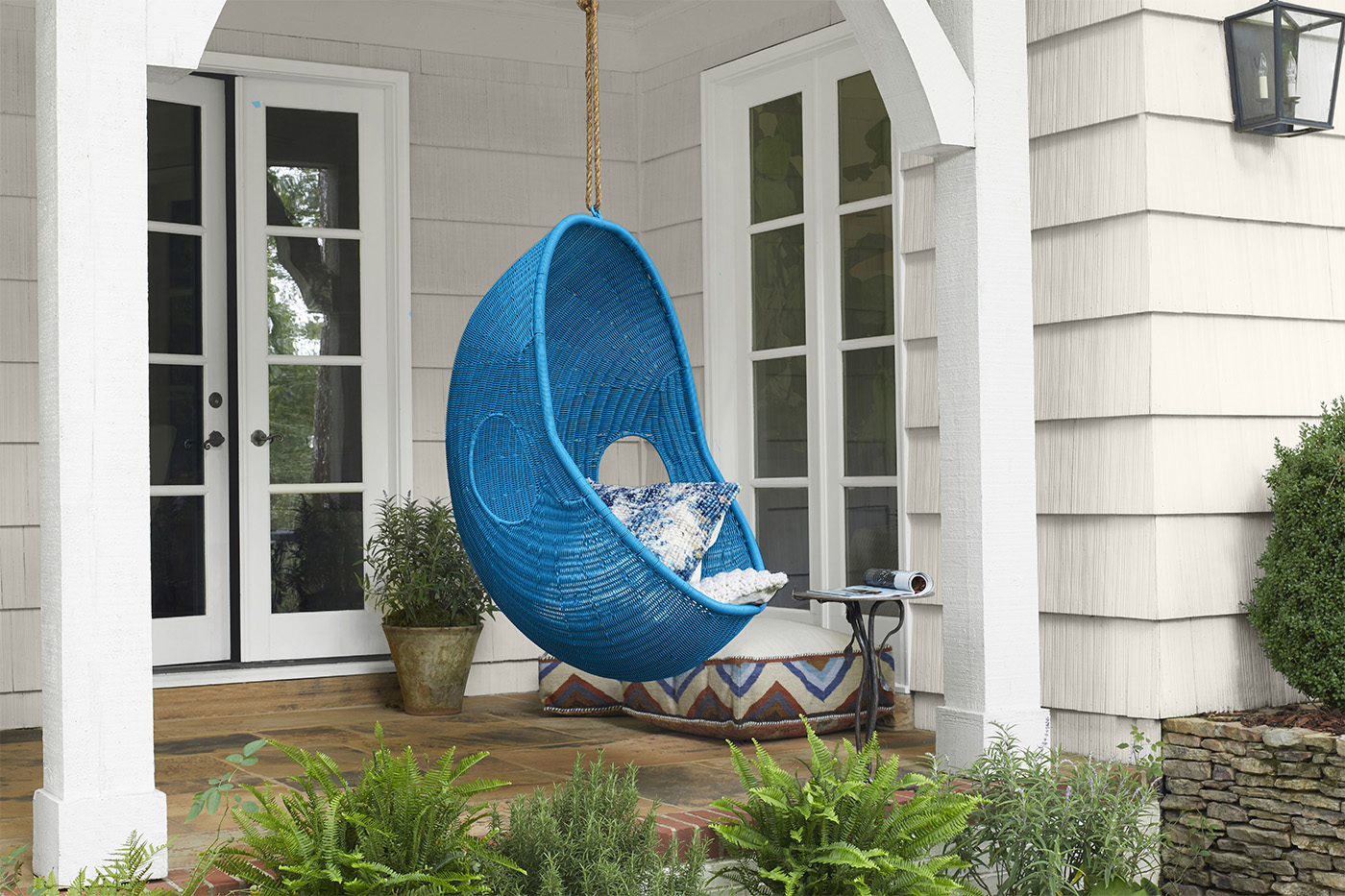 Porch with Blue Hanging Chair
