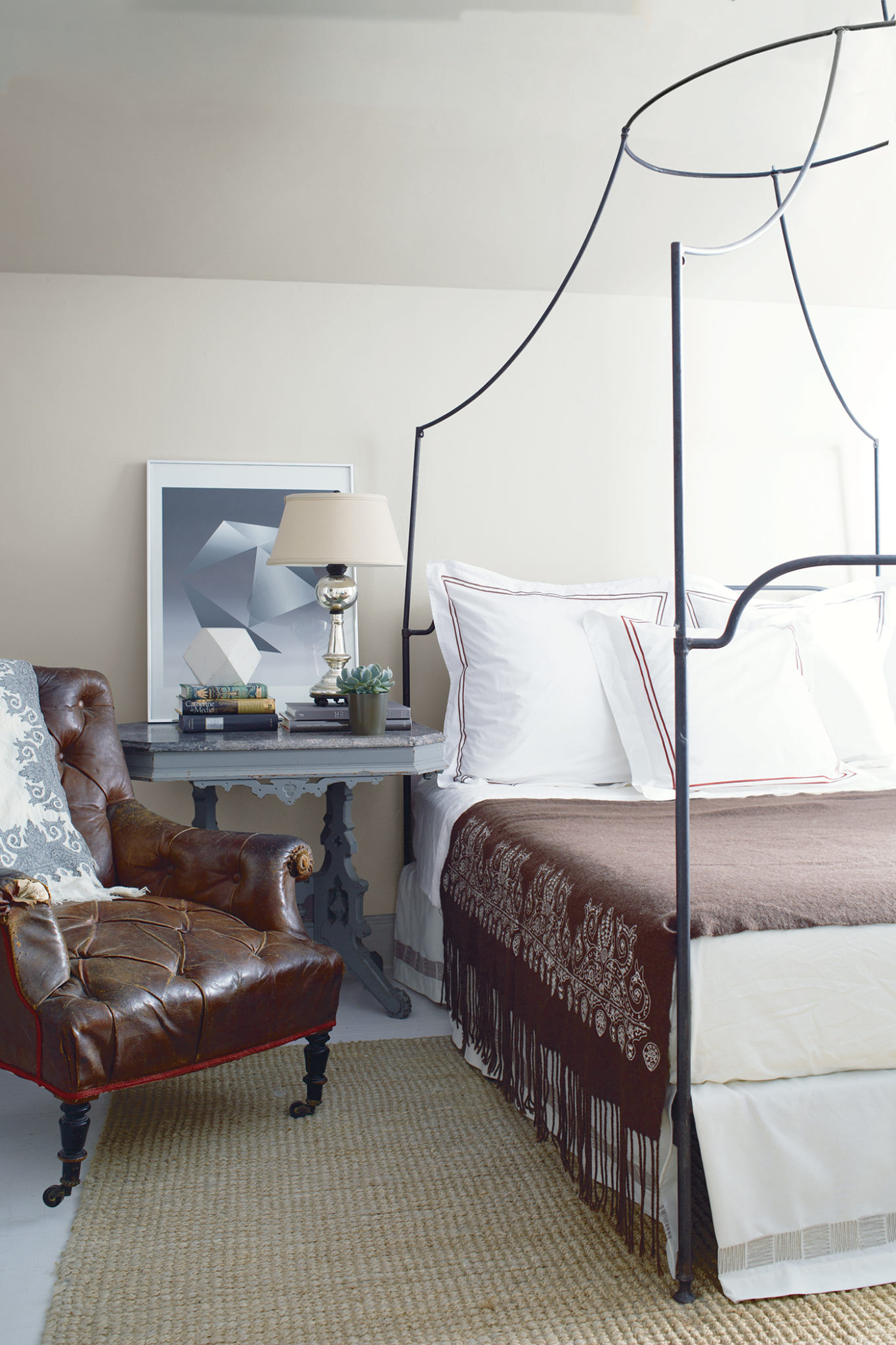 Portland Gray Bedroom with Metal Frame Bed Portland Gray2109-60Image of Bedroom featuring Portland Gray 2109-60 (Natura, Eggshell) on the Wall