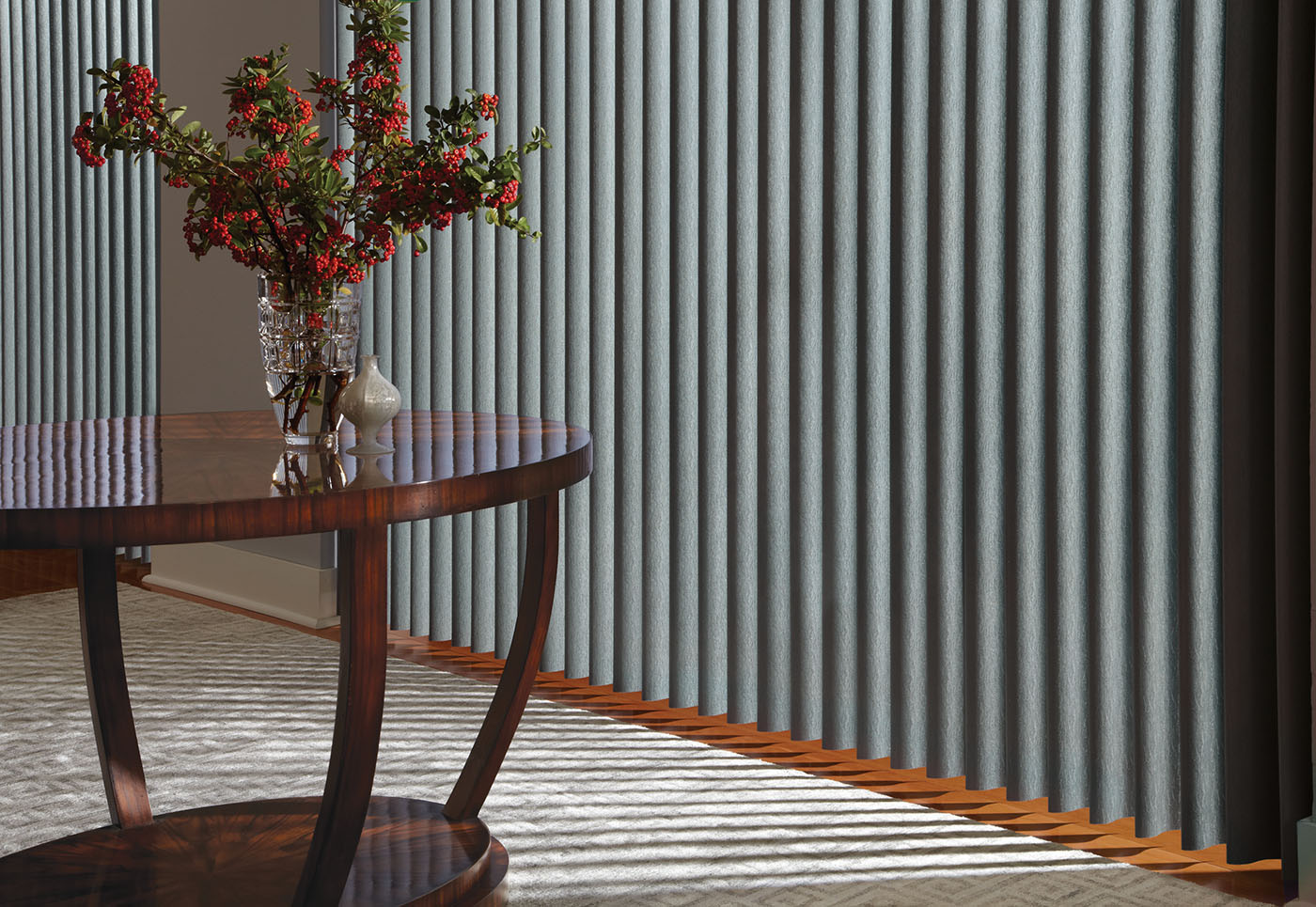 Regal Living Room with Cadence Soft Vertical Blinds with Permatilt