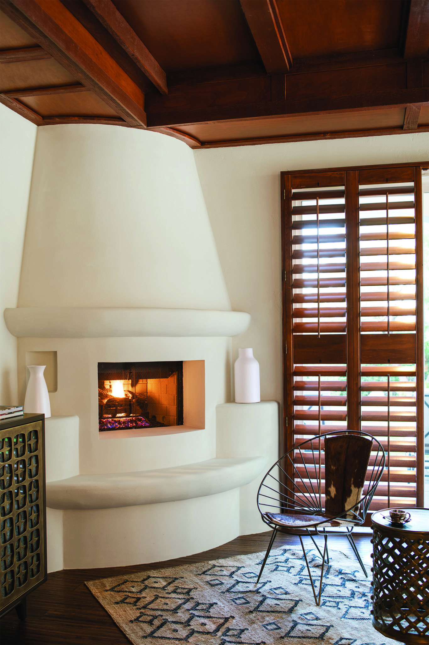White Wall with Adobe Fireplace