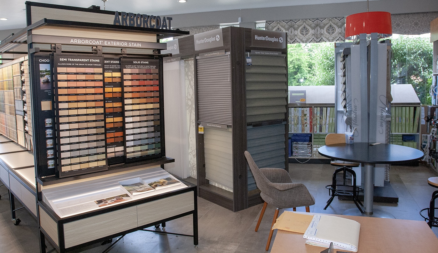 We’re more than just a paint place, our design team is ready to help you get just the look you’re dreaming of. We specialize in shades, blinds, custom drapery, and wallpaper. We have a selection of Hunter Douglas products on display but also offer a Shop At Home service where we come to your space to help perfectly match high-quality products with your project.