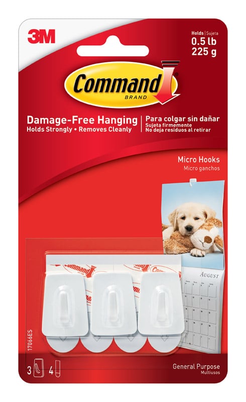 3M Command Small Plastic Micro Hooks 1-1/8 in. L 3 pk