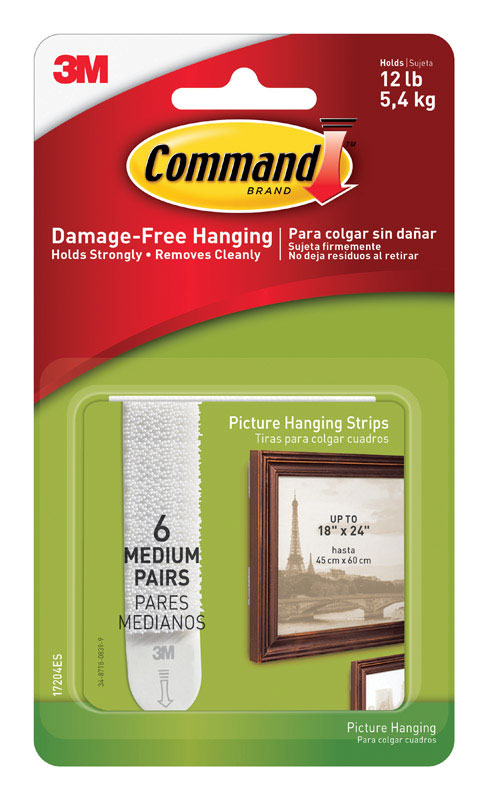 3M Command White Medium Picture Hanging Strips 12 lb 6 pk