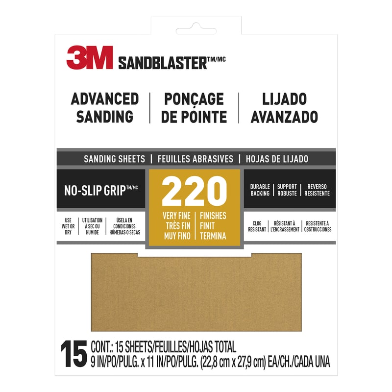 3M Sandblaster 11 in. L X 9 in. W 220 Grit Aluminum Oxide Sandpaper 15 pk
