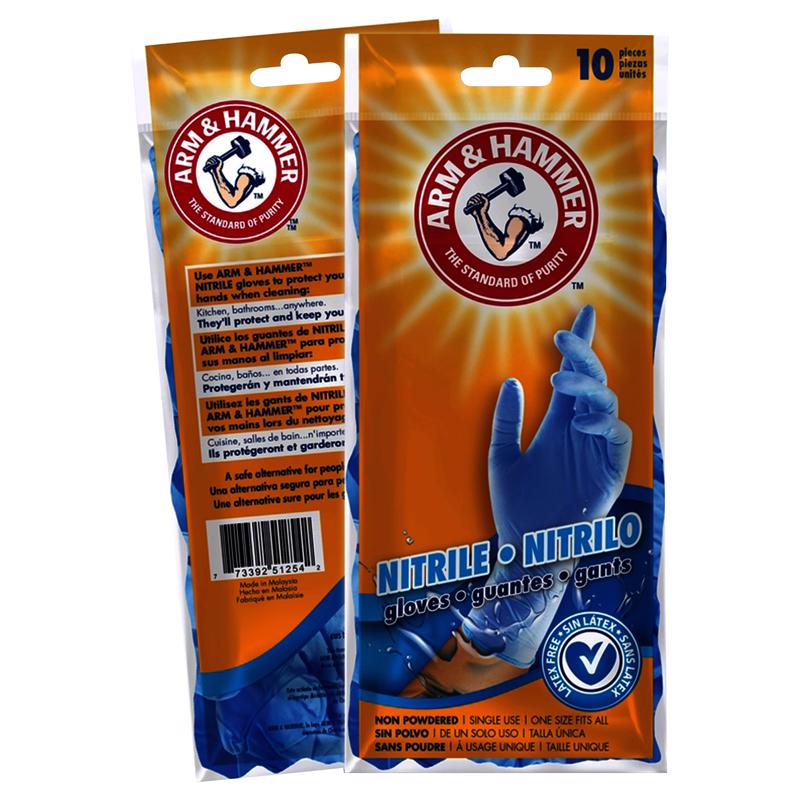 Arm & Hammer Nitrile Disposable Gloves One Size Fits Most Blue Powder Free 10 pk
