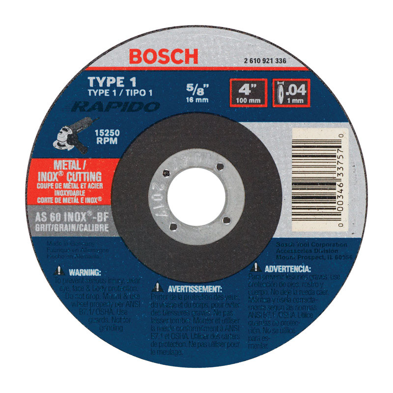 Bosch Rapido 4 in. D X 5/8 in. Aluminum Oxide Abrasive Cut-Off Wheel 1 pc