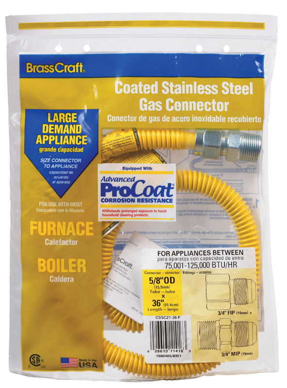 Categories: Bagged Pro-coat Gas Conn, Brasscraft, Gas/water Connectors, Plumbing/Heating