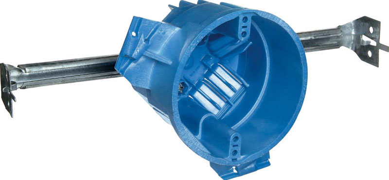 Carlon 25 cu in Round Thermoplastic 1 gang Electrical Box w/Hanger Bar Blue