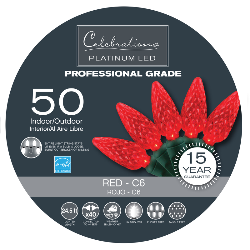 Celebrations Platinum LED C6 Red 50 ct String Christmas Lights 24.5 ft.
