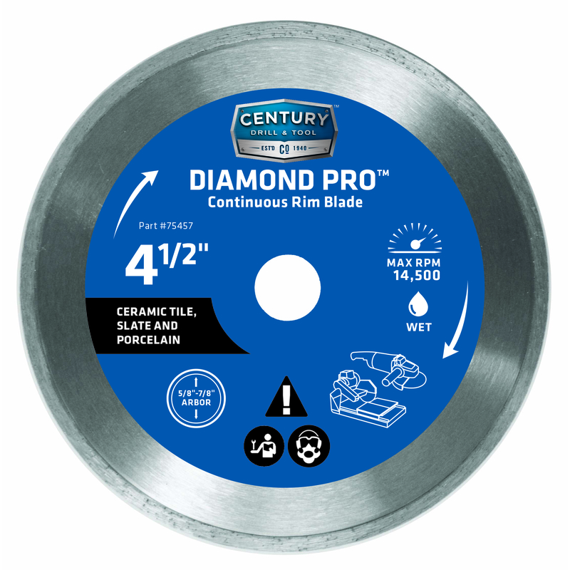 Century Drill & Tool Diamond Pro 4-1/2 in. D X 7/8 in. Diamond Continuous Rim Diamond Saw Blade 1 pk