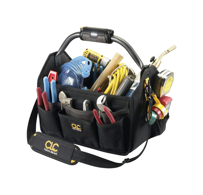 CLC Tech Gear 8.5 in. W X 11.5 in. H Polyester Lighted Tool Bag 22 pocket Black 1 pc