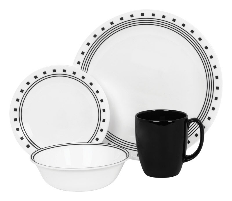 Corelle White Stoneware City Block Dinnerware Set 16 pc