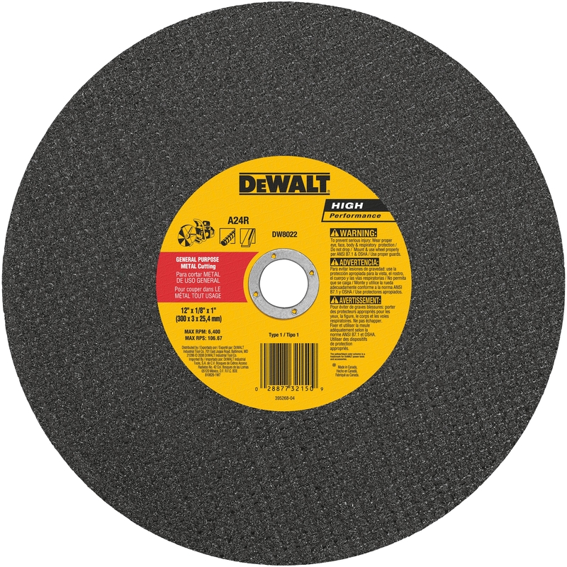 DeWalt 12 in. D X 1 in. Aluminum Oxide Cut-Off Wheel 1 pc
