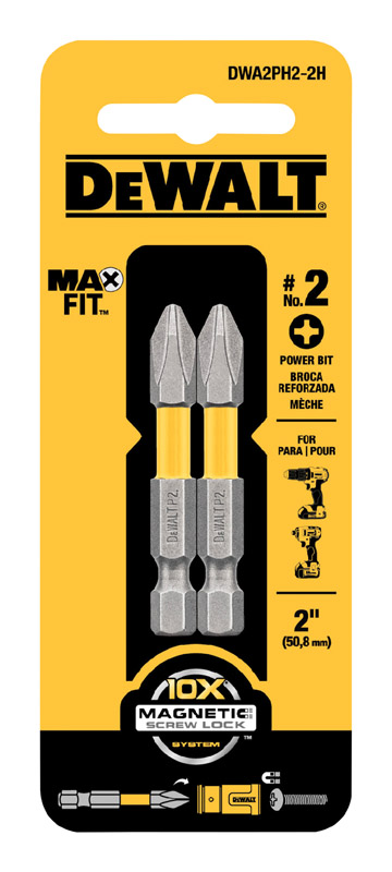 DeWalt Max Fit Phillips #2 X 2 in. L Power Bit S2 Tool Steel 2 pc