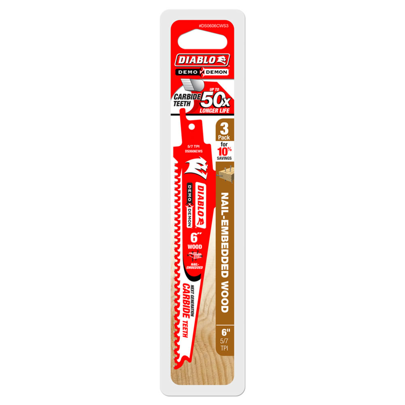 Diablo Demo Demon 6 in. Carbide Reciprocating Saw Blade 5/7 TPI 3 pk