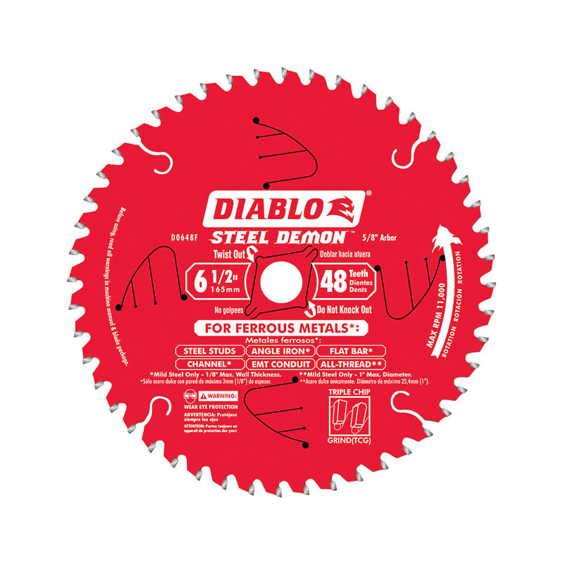 Diablo Steel Demon 6-1/2 in. D X 5/8 in. Carbide Tipped Steel Circular Saw Blade 48 teeth 1 pc