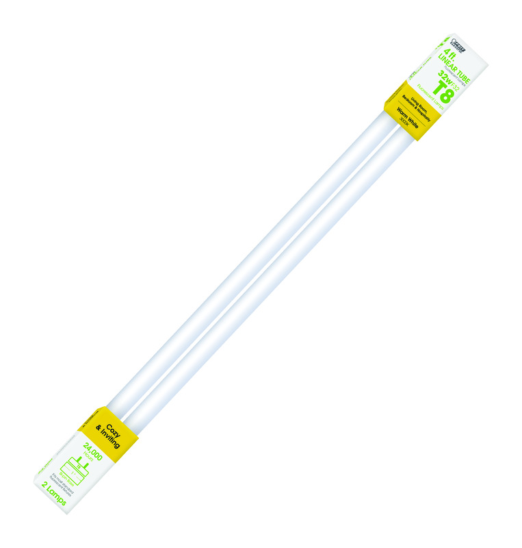 Feit Electric 32 W T8 1 in. D X 48 in. L Fluorescent Bulb Warm White Linear 3000 K 2 pk