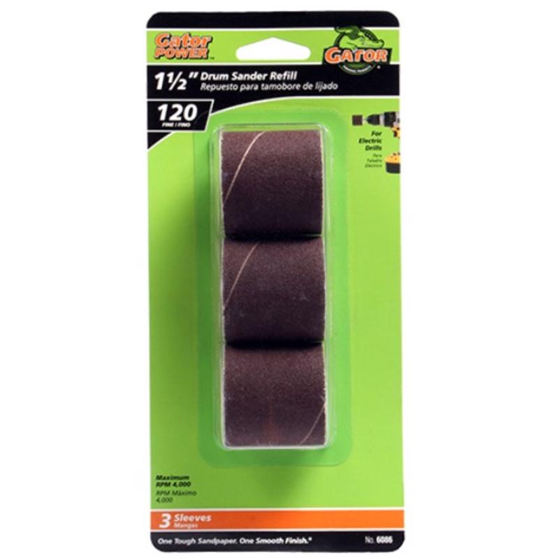 Gator 1.5 in. D X 1.5 in. L Aluminum Oxide Abrasive Sleeve Refill 120 Grit Fine 3 pc