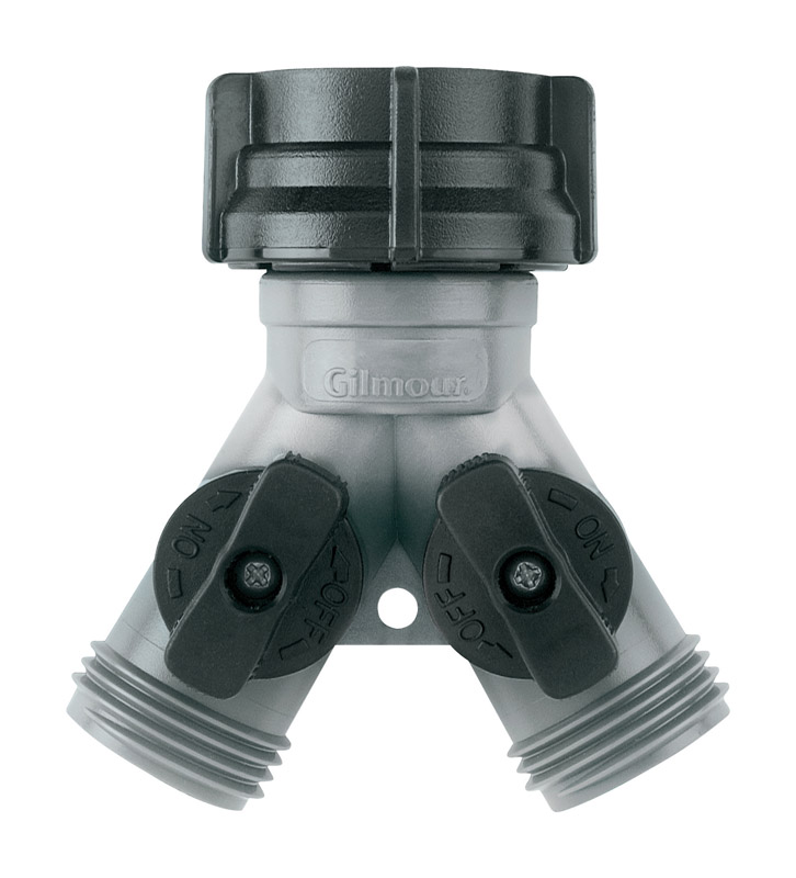 Gilmour Polymer Threaded 2 Male/1 Female Y-Hose Connector with Shut Offs