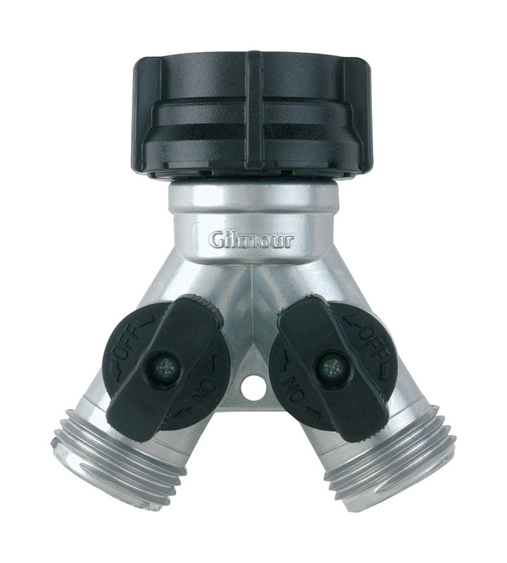 Gilmour Zinc Threaded Male Y-Hose Connector with Shut Offs
