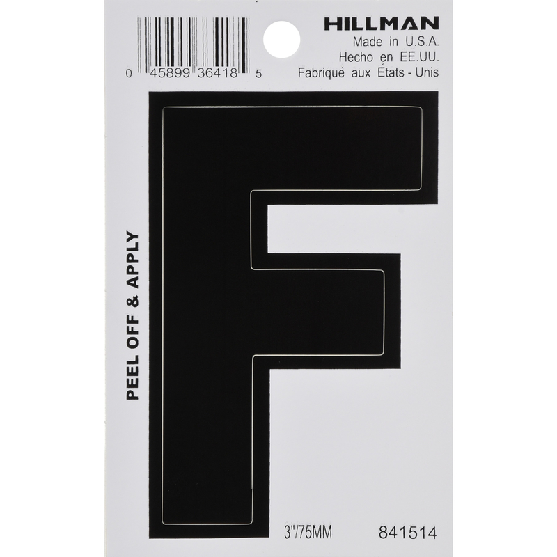 Hillman 3 in. Black Vinyl Self-Adhesive Letter F 1 pc
