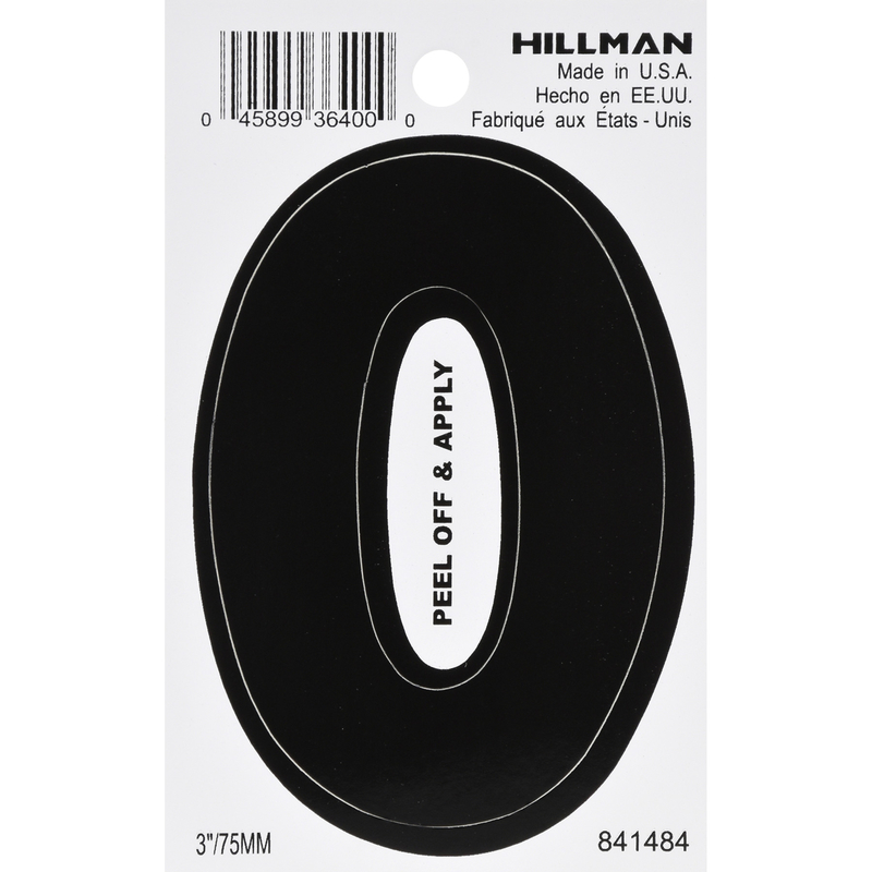 Hillman 3 in. Black Vinyl Self-Adhesive Number 0 1 pc