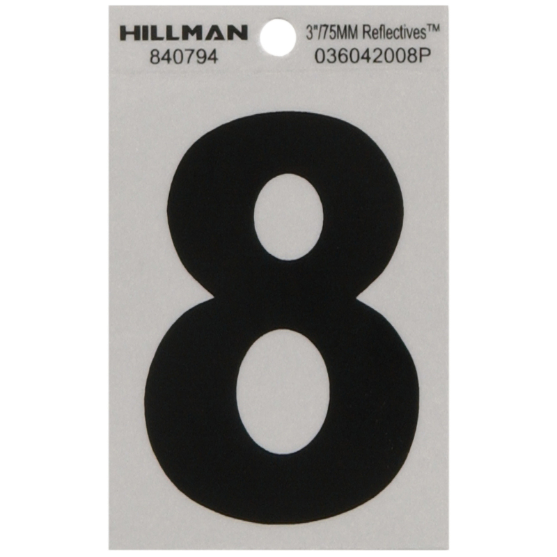 Hillman 3 in. Reflective Black Vinyl Self-Adhesive Number 8 1 pc