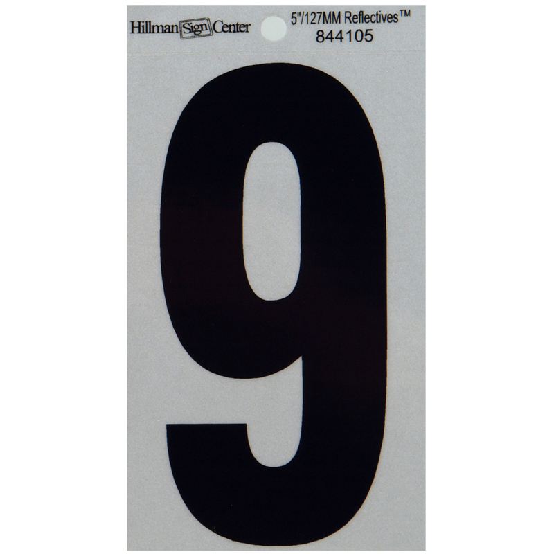 Hillman 5 in. Reflective Black Vinyl Self-Adhesive Number 9 1 pc
