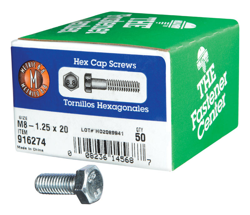 Hillman M8-1.25 mm D X 20 mm L Heat Treated Steel Hex Head Cap Screw 50 pk