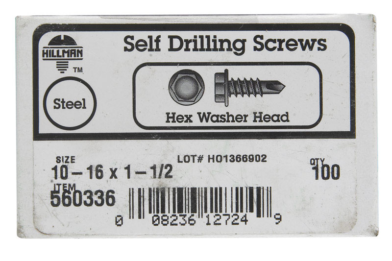 Hillman No. 10-16 X 1-1/2 in. L Hex Hex Washer Head Sheet Metal Screws 100 pk