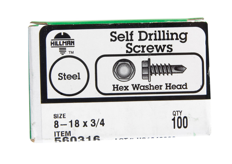 Hillman No. 8-18 X 3/4 in. L Hex Hex Washer Head Self- Drilling Screws 100 pk