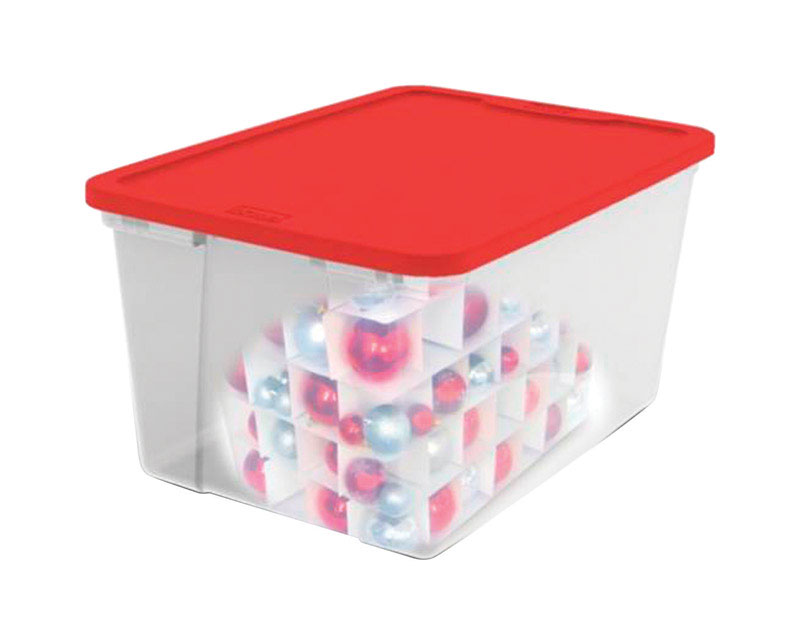 Homz 56 qt Clear/Red Storage Tote 12-3/16 in. H X 16 in. W X 23-1/2 in. D Stackable