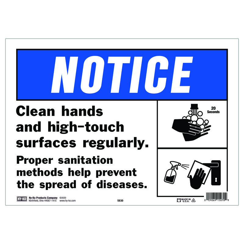 • Sign Message: NOTICE Clean Hands and High-Touch Surfaces