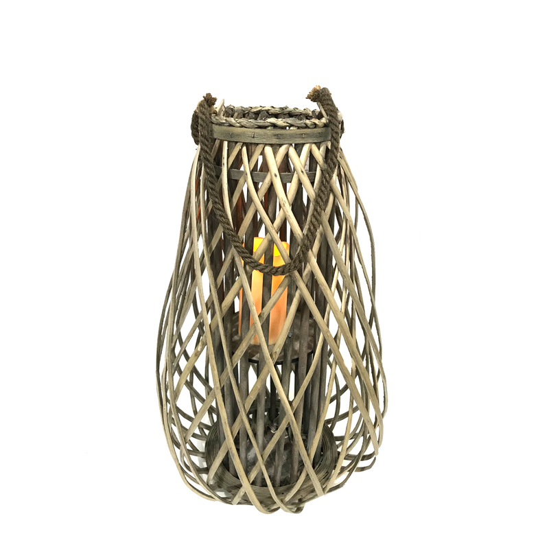 Infinity 33.46 in. Wood Willow Flameless Lantern Gray
