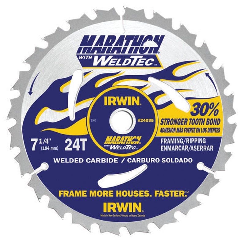 Irwin Marathon w/ WeldTec 7-1/4 in. D X 5/8 in. S Carbide Circular Saw Blade 24 teeth 1 pk