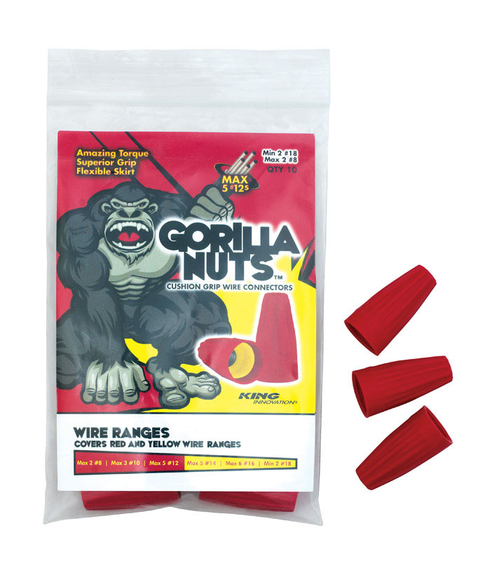 King Innovation Gorilla Nuts 18-8 AWG Copper Wire Wire Connector Red/Yellow 10 pk