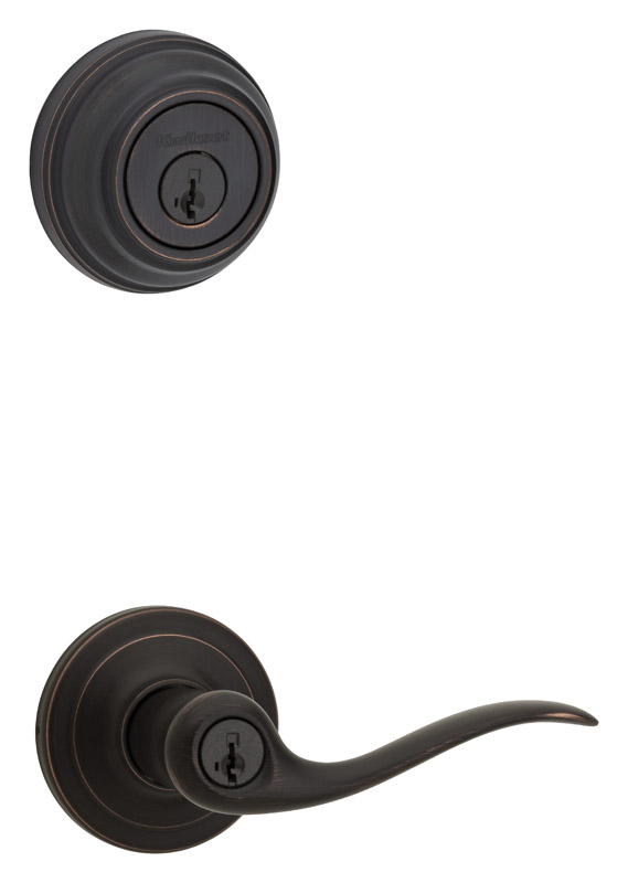 Kwikset SmartKey Tustin Venetian Bronze Entry Lever and Deadbolt Set KW1 1-3/4 in.