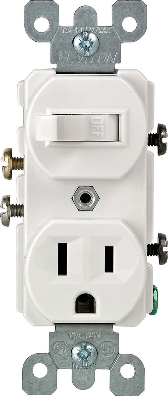 Leviton 15 amps Single Pole Combination Switch & Receptacle White 1 pk