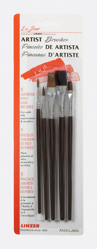 - Packaging Type: Carded Includes #2 and #4 Pony Hair Round, 1/4 in. 1/2 in. Pony Hair Flat, 1/2 in. Black Bristle Flat