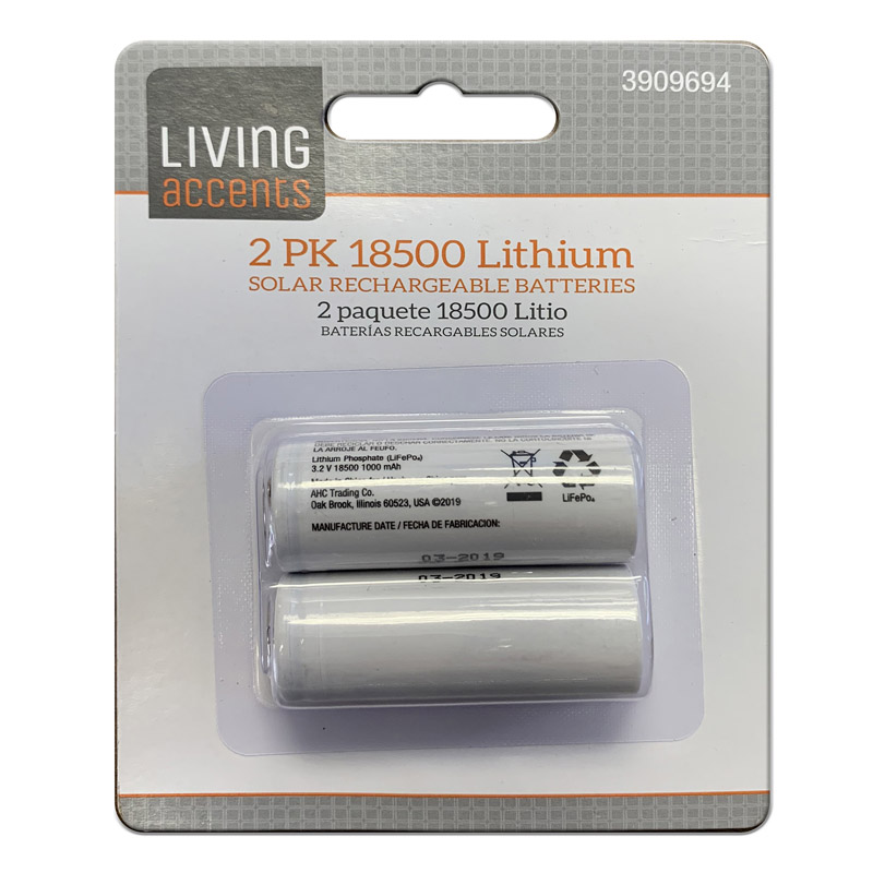 Living Accents Lithium Phosphate 18500 3.2 V 1000 Ah Solar Rechargeable Battery 2 pk