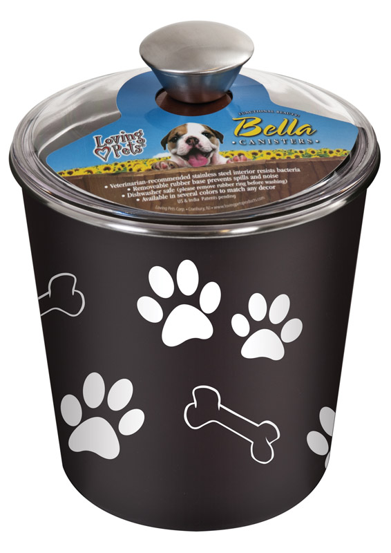 Loving Pets Bella Espresso Bones and Paw Print Stainless Steel 9 cups Treat Canister For Dog