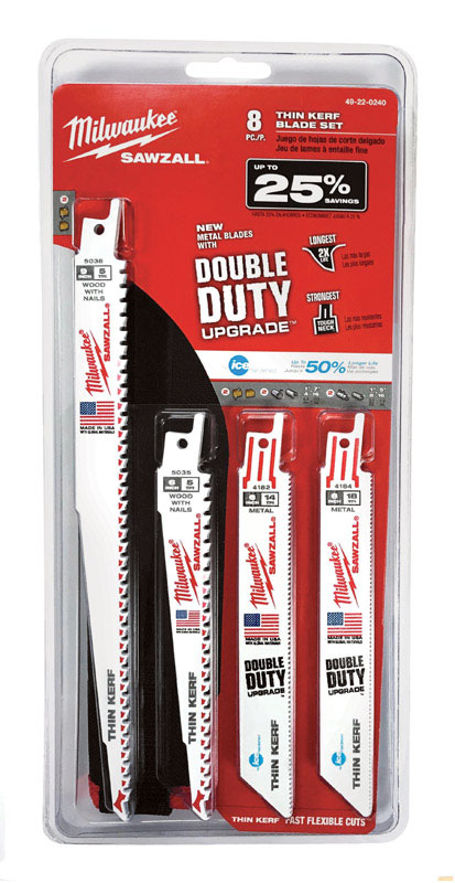 Milwaukee SAWZALL 6 and 9 in. Bi-Metal Ice Hardened Reciprocating Saw Blade Set Multi TPI 8 pk
