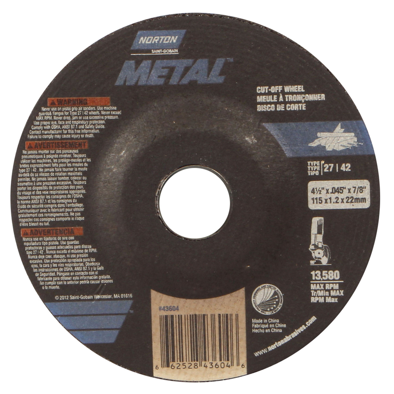 Norton 4-1/2 in. D X 7/8 in. Aluminum Oxide Cut-Off Wheel 1 pc