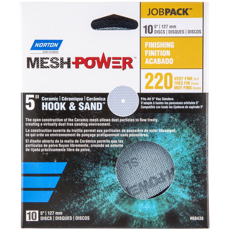 Norton MeshPower 5 in. Ceramic Hook and Loop Mesh Sanding Disc 220 Grit Very Fine 10 pk