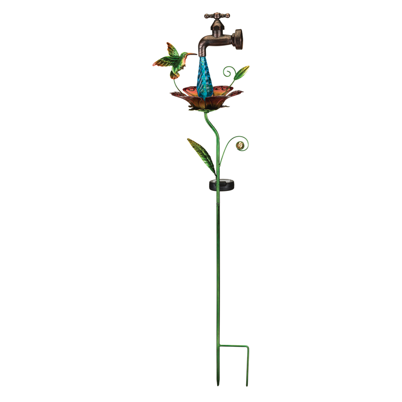 Regal Art & Gift Multicolored Glass/Metal 36 in. H Waterdrop-Hummingbird Solar Garden Stake