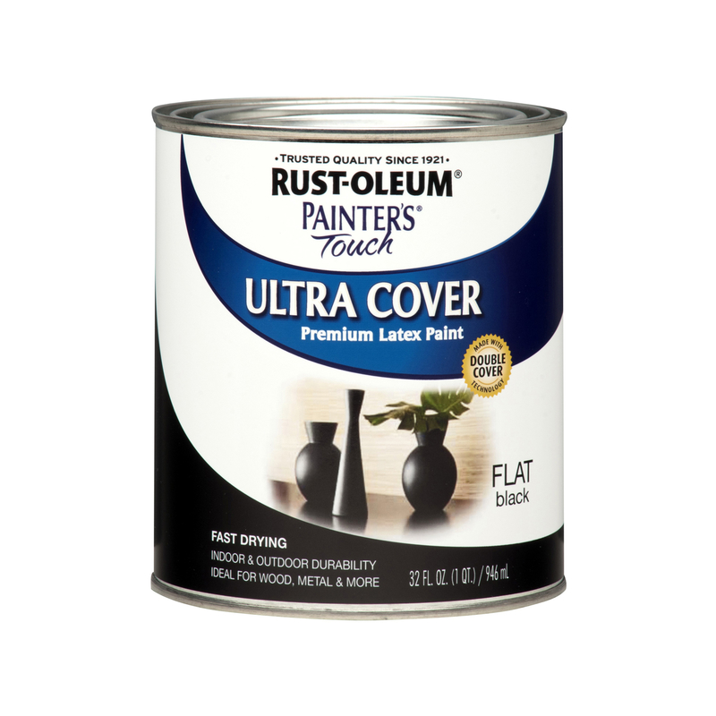 Rust-Oleum Painters Touch Ultra Cover Flat Black Water-Based Paint Exterior & Interior 1 qt