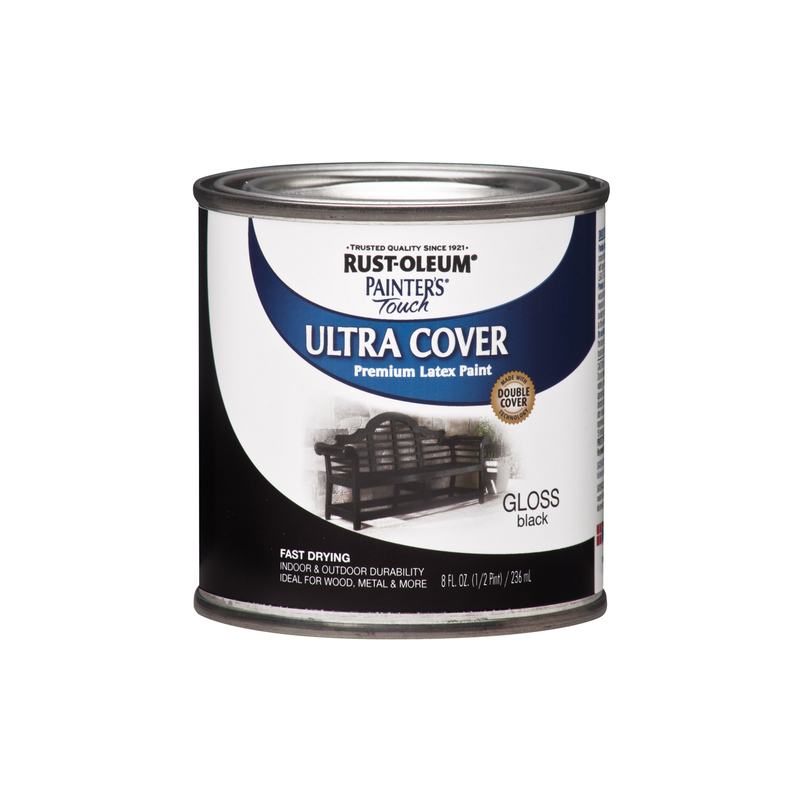 Rust-Oleum Painters Touch Gloss Black Water-Based Ultra Cover Paint Exterior & Interior 0.5 pt